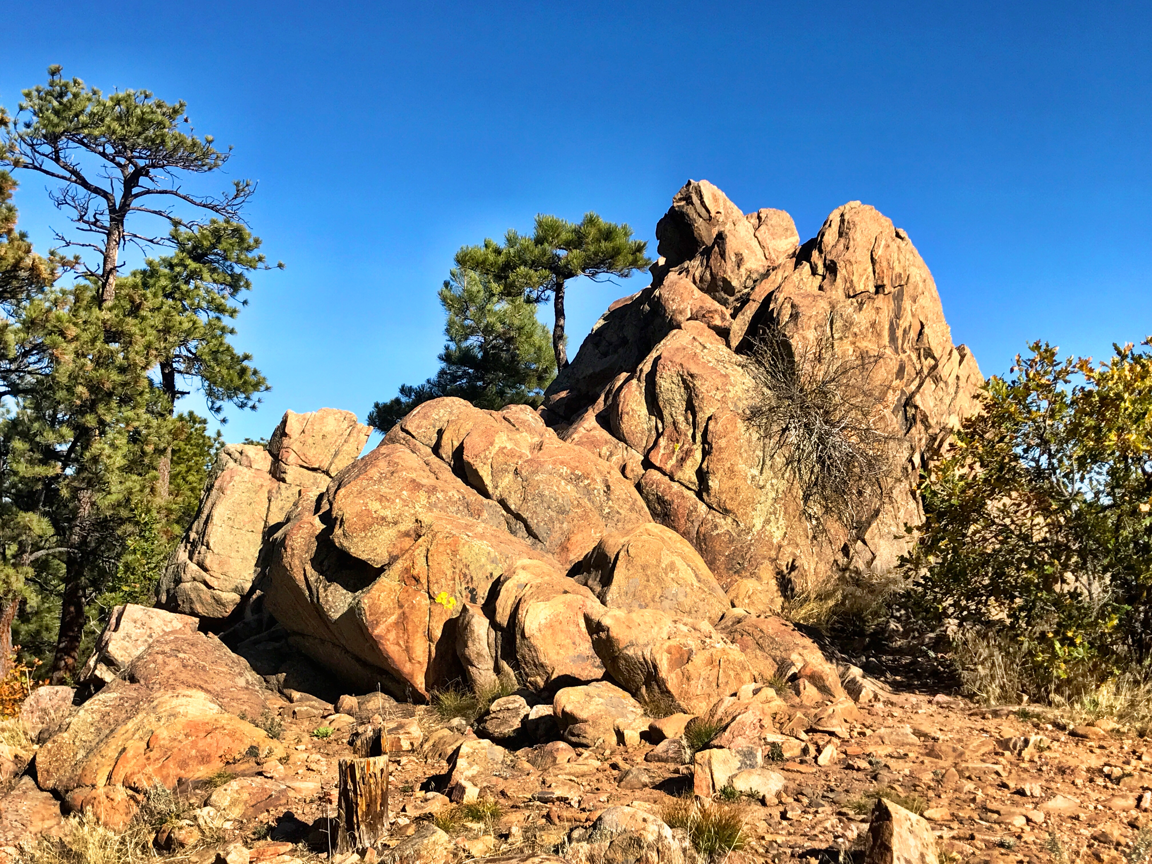 Once on the Scenic View Trail, I got some great vista views. As I got to the rock formation at the end of the trail at 7,274′ high, I enjoyed a quick snack while taking in the view on a glorious fall day, including Denver in the distance.