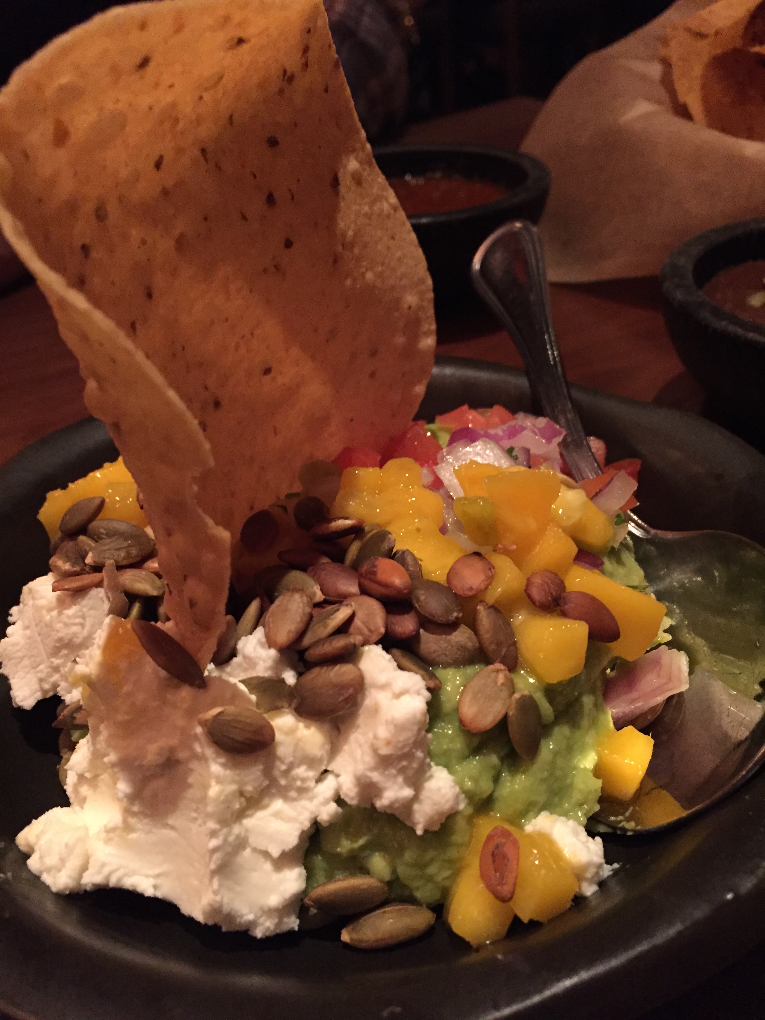My first trip to Scottsdale, Arizona, was a 48-hour adventure that left me yearning for the next time I can return to the desert. It is a year-round destination where luxury meets adventure and for me this trip it was also a culinary journey through the desert. I flew into Phoenix on a Friday evening and within a quick 30 minutes was walking into dinner with a friend who had lived in Scottsdale for years. I was lucky this trip as I had a tour guide to show me the best of what the Arizona desert has to offer. He picked SOL Mexican Cocina in the Scottsdale Quarter for my first meal in the “desert version of Miami’s South Beach” as dubbed by the New York Times. It was a lovely, slightly cool evening so the warmth of the fire on the outdoor terrace was welcomed. The Organic Slim Margarita I had while waiting for a table was delightful, but once we sat down, I splurged on SOL’s ultimate margarita. The Grande Clase Azul Margarita is made with Clase Azul reposado, fresh lime juice, agave nectar and Cointreau shaken tableside. From the antojtos (appetizers), the shrimp taquitos and coconut calamari sounded appealing, but we had to go with the Guacamole SOL, which is their naked guac topped with mango, tequila, creamy goat cheese, toasted pepitas and cilantro served up with crispy tostadas because I can’t go to any Mexican restaurant without ordering guacamole!