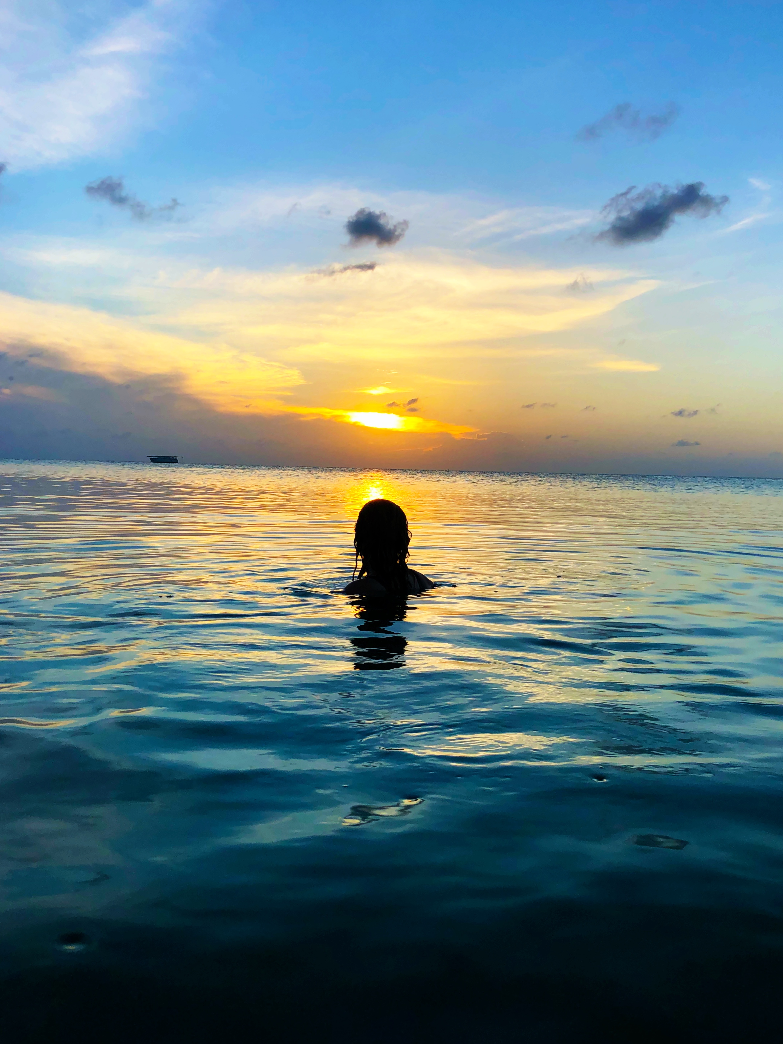 After snorkeling that day and imbibing on rum punch, most of my G Adventures group headed over to the Lazy Lizard Bar at The Split. It’s considered the most visited bar in Belize. We grabbed frozen margaritas and headed over to find a sunset spot. Instead of just sitting there, my new friend Jazmine and I opted to go for a swim. I’d never watched a sunset actually swimming in the ocean – a first for me! With the blue hues of the water blending into the colorful orange canvas in the sky, I couldn’t stop saying, “Wow!”