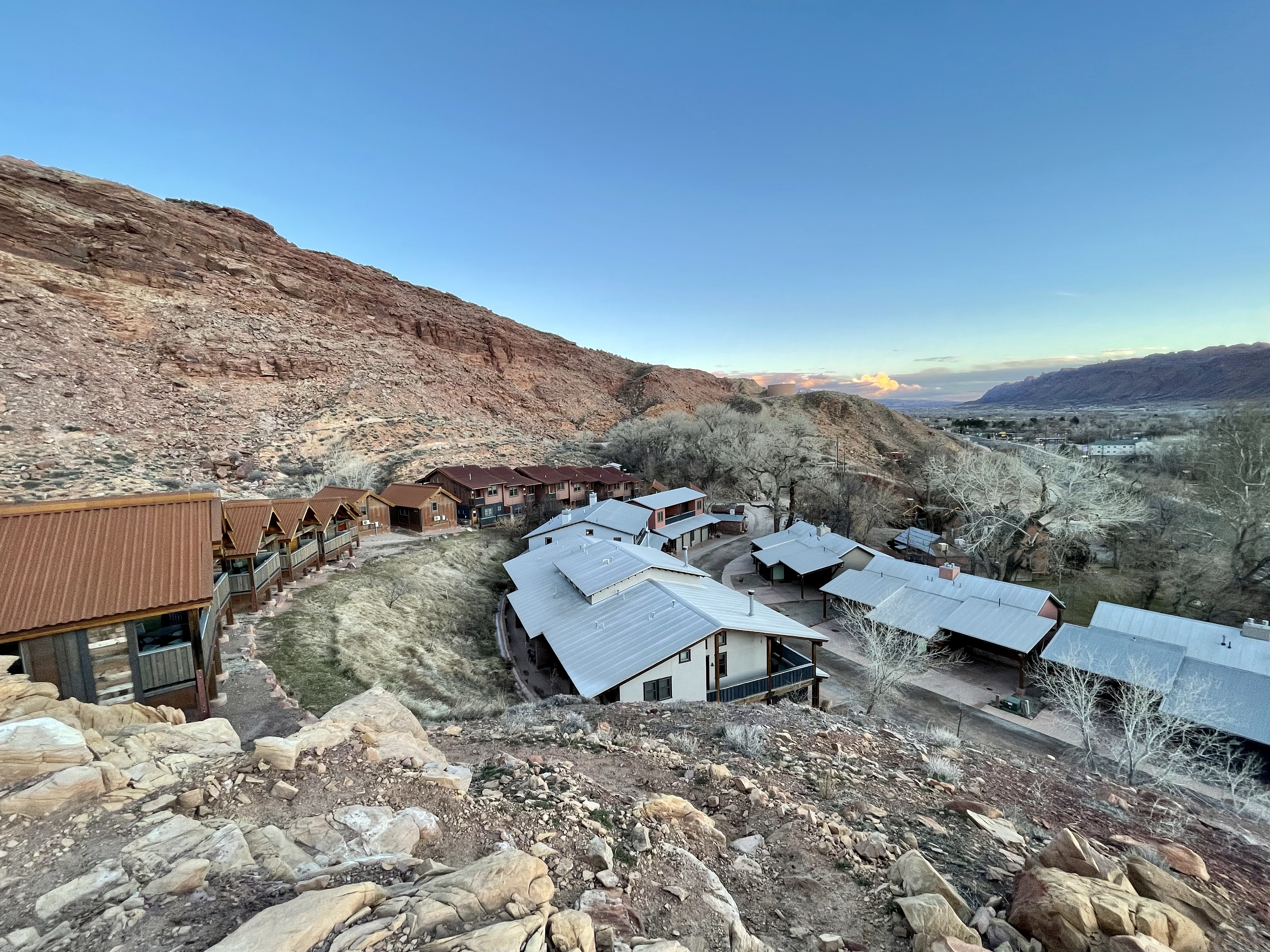 I took one of my bestie’s 18-year-old son to Moab so he could start checking off the national parks he wants to hike in. When looking for a place to stay I found Moab Springs Ranch. Having been to Moab multiple times, I can tell you its location on the north side of town is perfect. It’s close enough to run into town for food and, being on the north side, it’s easier to head to Arches National Park and Island in the Sky unit of Canyonlands National Park because you don’t have to deal with town traffic. Moab Springs Ranch has stand-alone bungalows and 1-3 bedroom townhomes nestled into the side of a mountain with lots of shade from cottonwood trees.