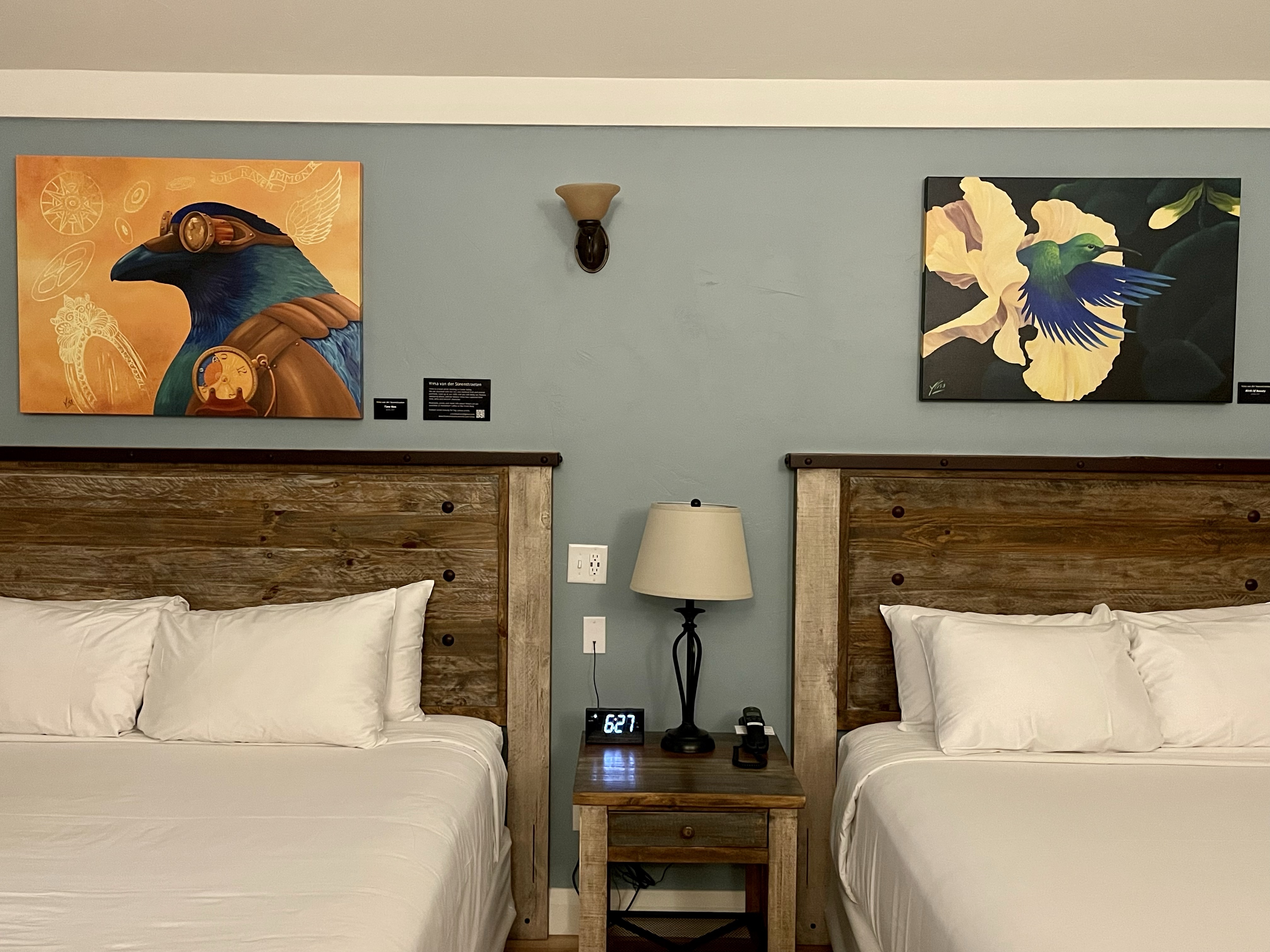 I arrived late afternoon and checked-in with my friend Jenn, assistant manager of the property. Next to the office is Horsethief Coffee. A great property with a delightful coffeehouse is right up my alley. Both the office and coffee shop are in a historic ranch house. I drove up to Bungalow #35 just in time to catch sunset. I did a very short hike to an overlook on property and enjoyed a beautiful desert sunset. We stayed three nights and on our last morning, we got an amazing sunrise of pink and orange hues filling the sky. The property’s front yard is an amazing view. It’s backyard is the Slickrock Mesa Wilderness with a lovely trail behind the bungalows you can hike down to the Meadow area.