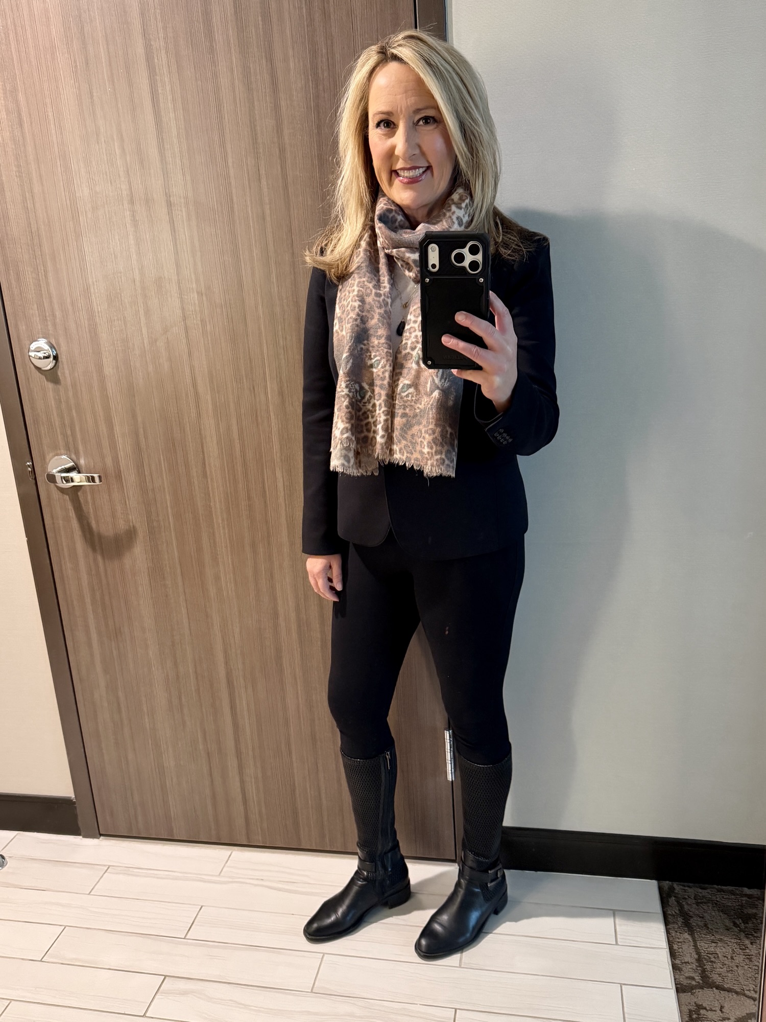 Comfortable, warm, polished, and camera-ready if needed are what this cold weather capsule does. I did wash undies, socks, and workout wear midway through trip. The animal print scarf quietly carried this entire trip. That is the MVP of the business trip packing list. The one item I could have done without? The grey jacket. I packed it as an extra, but truly didn’t need it. Neutral bases, several scarves, and weather-smart layers are key. Thoughtfulness in packing is a time-saver during trip! Hope my winter business travel packing list helps you be a carry-on traveler, even in the heart of winter.